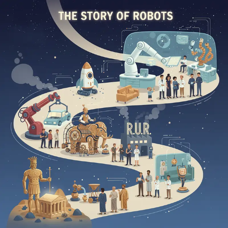 The history of robots is really the story of people wanting to build helpful partners that can do hard work for us. For thousands of years, humans have dreamed of making machines that act like living things. This dream started as magic stories in ancient times and turned into the high-tech machines we use today.